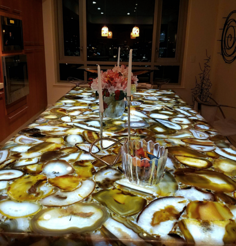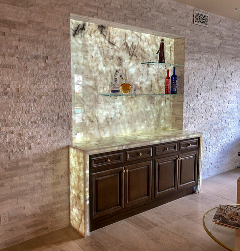 SLABlite installations vary from countertops, walls, spas, bars, boats, floors, bathrooms, wine cellars, closets, fireplaces to just hanging illuminated slabs on walls as artwork.