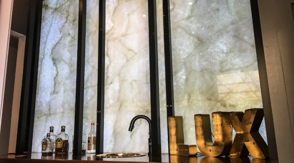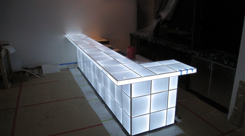 Lighting is often an afterthought when people look to transform their living space or the confines of their office. They think of furniture, pictures, bookshelves. But spectacular lighting, especially of the sort offered by SLABlite’s technology, should be high on anyone’s list. SLABlite installations can transform everything from vanities, bars, and countertops to bars, fireplaces,
